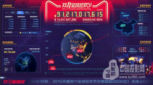回顧2015年雙十一在水立方的媒體中心,位于正中的顯示屏給我們帶來了震撼的數(shù)據(jù)展示: