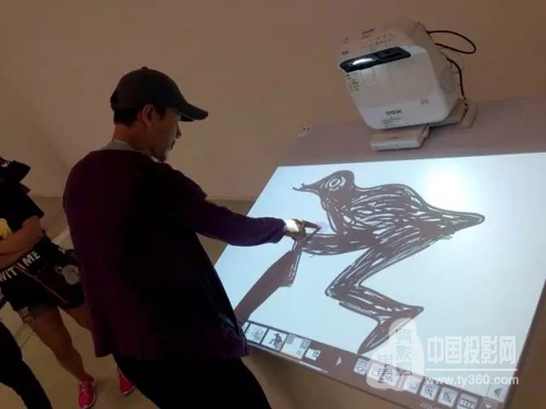 看過展覽意猶未盡,觀眾還可以在美術館特意準備的“畫板”前“揮毫潑墨”。這可不是一塊普通的“畫板”,它可是有秘密武器的,而這個秘密武器就是愛普生CB-1430Wi多媒體液晶投影機。