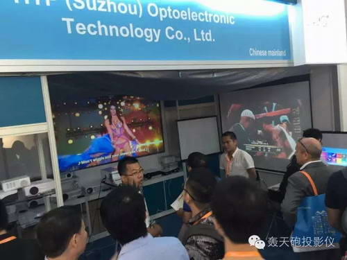 會展的第二天,轟天炮的展位現場門庭若市:轟天炮投影儀的展位位于:1D——B07
