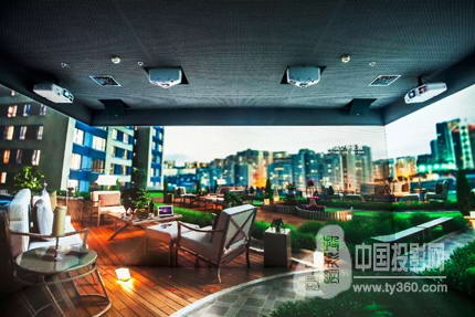 為進一步提升看房客的參觀體驗,售樓處特意設置“影院”展廳,工作人員利用投影機內置的融合功能使“影院”的3面墻體和地面可融合成為一個整體的投影畫面,豐富的接口可以滿足樓盤工作人員鏈接筆記本電腦、Ipad等移動設備需要,為樓盤項目演示視頻提供更多的來源,投出的畫面清晰、明亮,效果立體、逼真,使得觀者有身臨其境的深切感受,效果震撼。