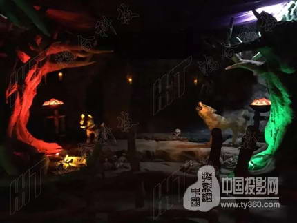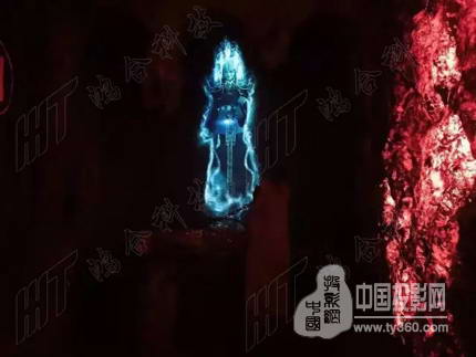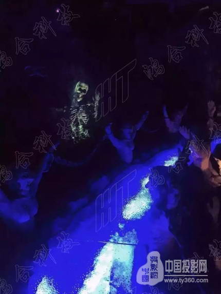 當游客走過冥河,觸發(fā)紅外開關,投影機將影像投射在兩邊的布景上,各種恐怖影像接踵而至,結合現(xiàn)場實景,感覺不能更真了。
