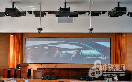 3臺上萬流明的Vivitek(麗訊)高端工程機在綜合樓報告廳打造震撼巨幕