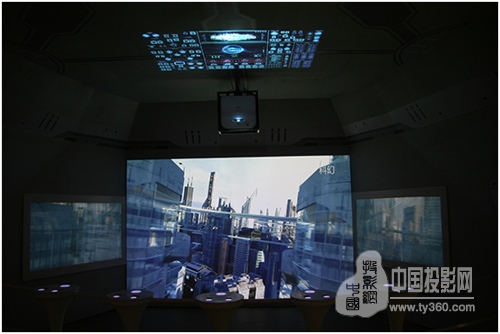 派克斯PROPIX PL-UX320C是一款超短焦投射,投射80英寸,鏡頭與電子白板距離僅49CM,可以滿足一些對距離有特需要求的展項。如在中國科技館科幻場景展示區域里,一塊打到天花板上的投影畫面最是吸晴。由于該區域用于顯示的設備眾多,要做到互不影響,唯有最小的空間實現最大的畫面,在該展項中,PL-UX320C投影機通過吊裝,在最短的距離里向天花板打出了一塊超大的畫面,完美的演示效果與意想不到的投射方式讓科技與創意真正實現了水火交融。