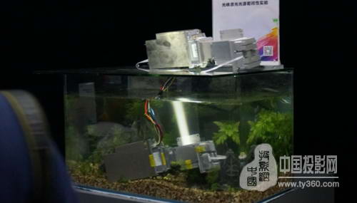 光峰激光光源光機在水里發光,為水中魚兒的生活增添光彩。