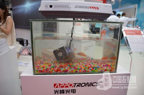 研究表明,教育環境中粉塵是投影機的致命殺手之一,粉塵對投影機的侵蝕可引起畫面閃爍或畫面斑點,嚴重者甚至可使投影機無法開機或者光路系統腐蝕損壞等,而投影機的壽命和穩定性則是教育用戶最為看重的采購指標。為此,光峰把光源密閉性的解決方案帶到展會現場,讓大家更近的了解到光峰自有品牌的獨特價值所在。黃總表示:“我們把一臺已點亮的激光投影機光機取出來放到水里,且水缸里面還有魚在游動,可以看到其依舊在正常的工作中,這點可以很好說明光峰激光教育投影機的品質。完全封閉的光機,可以很好的阻擋灰塵進入,大大增強了激光教育投影機的高穩定性運行。”