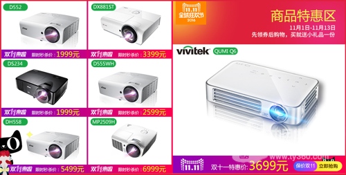 Vivitek(麗訊)微投QUMI Q6等多款機型在“11.11”期間會以特惠價售賣