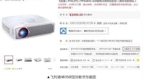 飛利浦PPX4835微型投影機 市場售價:2699元
