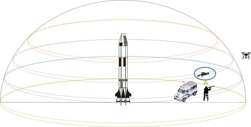 保障過程中,操作人員身背“作戰(zhàn)背包”,手握干擾“槍”,時(shí)刻觀察空中情況。在火箭發(fā)射現(xiàn)場外圍行成一道空中屏障,一旦有無人機(jī)出現(xiàn),它就將面臨“槍林彈雨”,絕無逃脫的可能。