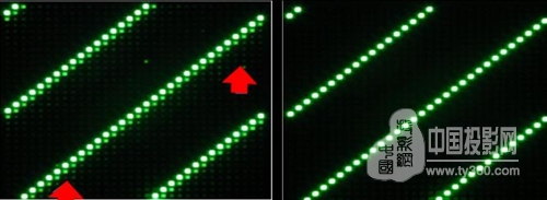 (下圖左邊為普通恒流驅動芯片的顯示效果,右邊為PWM高灰階驅動芯片的顯示效果)