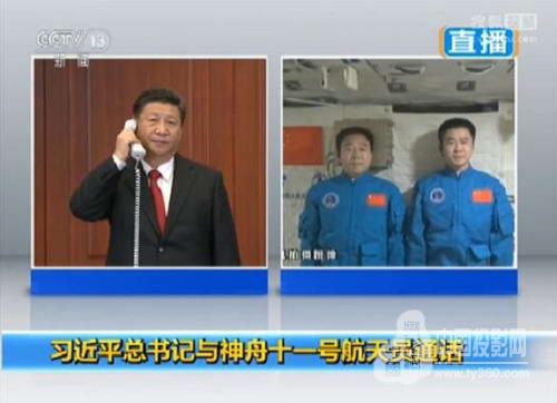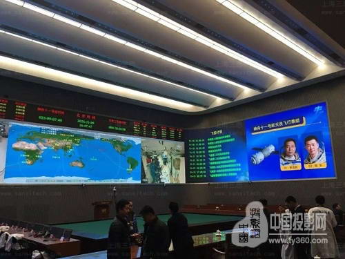 11月9日16時(shí),中共中央總書記、國(guó)家主席、中央軍委主席習(xí)近平來(lái)到北京某航天飛行控制中心,通過(guò)三思高清小間距LED顯示屏與正在天宮二號(hào)執(zhí)行任務(wù)的神舟十一號(hào)航天員景海鵬、陳冬進(jìn)行天地視頻通話。劉延?xùn)|、許其亮、范長(zhǎng)龍、栗戰(zhàn)書、中央軍委委員張又俠等領(lǐng)導(dǎo)人以及眾多航天科研人員一同見(jiàn)證了此次天地通話。