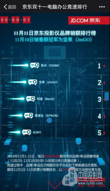 雙11兩小時 極米無屏電視僅天貓支付突破3922萬