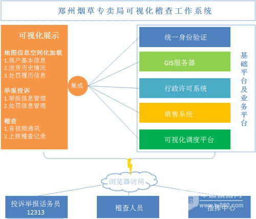 河南煙草專賣局在煙草打假工作上增大了信息化的建設投入,建設以商戶信息為核心的移動可視化稽查工作系統,意在對稽查人員的工作流進行優化來提升一線稽查人員的工作效率。