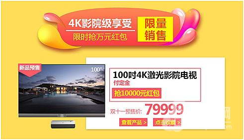 售價將近8萬元的海信4K激光電視在電商平臺中受熱捧絕非偶然。今年雙十一,彩電行業格局變化明顯,消費者對高端產品需求增強,雙十一不再拼低價,高端旗艦產品成為消費者“理性選擇”之后追逐的目標。僅以海信電視為例,截至11日上午9點,海信電視天貓旗艦店的平均單價提升了10%,平均尺寸相比去年提升了5寸。在此趨勢下,被行業稱為“大客廳首選”“護眼不刺激”的海信激光電視優勢明顯,價格不再成為“壕“們追求舒適生活的阻礙。海信激光電視具有88寸-120寸超大屏觀影體驗,100寸產品的最佳觀看距離僅為4米左右,完美搭配別墅與大平層客廳,合適不同風格的客廳。此外,海信激光電視采用激光反射成像原理,護眼不刺激,根據中國標準化研究院檢測顯示,其視覺舒適度優于普通閱讀20%以上。