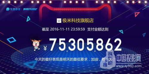 這是極米這家成立僅三年的公司第三次參加雙11狂歡購物節,也是極米連續三年穩居行業第一。2014年11月11日,極米首次參加雙十一,銷售額突破2000萬,在同行業全網銷量、銷售額均占第一;2015年11月11日,極米雙十一全網銷售額突破7000萬,較2014年翻了3.5倍,再次位列行業第一。2016年11月11日,極米僅天貓旗艦店支付金額就超過7500萬,超過去年全網銷售總額。