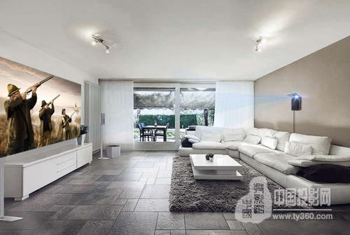 通過(guò)上圖示意我們可以看出,壁掛反射技術(shù)的采用不用像一般投影的正投反投吊投,需要拉一根常常的線(xiàn)到客廳中央或者是在天花板上開(kāi)一個(gè)洞那樣,即占用客廳空間又影響整體家居環(huán)境美觀(guān),只用將投影貼掛在墻面上,即可正常觀(guān)看百寸巨幕,非常實(shí)用。
