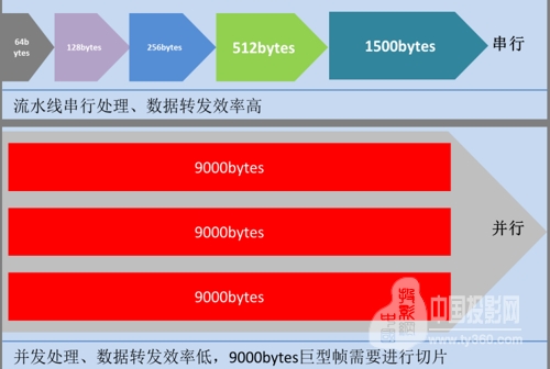 但視頻數據是【并行數據】,【而且數據大小不一,經常有9000bytes巨型幀】,也就是在同一時間內,并行提交;這就不難解釋專業測試參數在我們實際選型時,似乎難以應對。