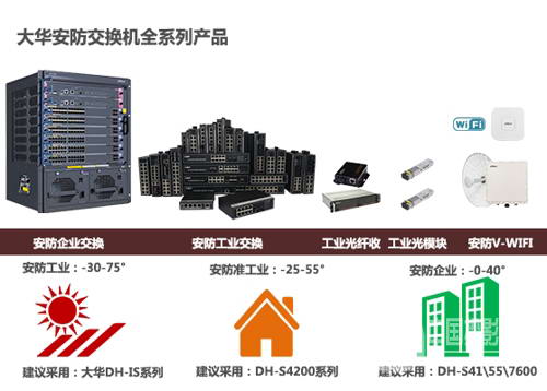 攝像機一般室外的工作溫度是-30-70度,安防工業交換機工作溫度是-40-75度,與攝像機可以組成非常好的搭檔。