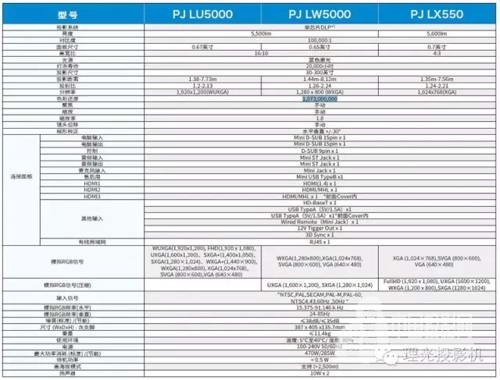 附:理光高端激光工程投影機PJ LU5000/LW5000/LX550參數