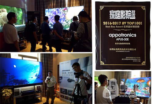 盛裝亮相的光峰激光電視系列產(chǎn)品,更是吸睛,觀眾、采訪、體驗不停歇,還捧回了《家庭影院技術》雜志的AV TOP100大獎!現(xiàn)場,不少老廣州發(fā)燒友拉著朋友來光峰展位做“普及”:“”咩叫做畫質,呢滴先叫畫質好唔好?識貨喇!
