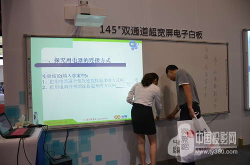 跟一體機相比,白板有其自身的優勢,F在與激光投影配套的白板尺寸最小都是90寸或90寸以上的寬屏,這種產品最符合老師的使用習慣的。且有了激光技術及短焦技術的加持,投影畫面可以打得很大且效果很好。跟一體機比起來,顯然電子白板在尺寸上更具優勢,而一體機要實現90、100寸的尺寸無疑是天價了,而這種尺寸恰恰是目前最受教育用戶的歡迎。