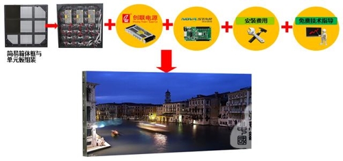 DIY一:?jiǎn)卧逭?BR> 單元板7880元/㎡+創(chuàng)聯(lián)電源約300元/㎡+諾瓦控制系統(tǒng)卡約500元/㎡+安裝服務(wù)費(fèi)+免費(fèi)技術(shù)指導(dǎo)。