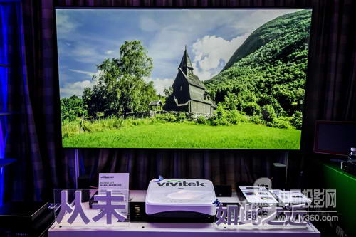在Vivitek(麗訊)展出的家用投影機產品中,最吸引眼球的當屬首次亮相的超短焦激光全高清家用投影機新品DH765Z-UST,它是Vivitek(麗訊)首款采用激光光源的家用投影機,現場搭配甲譜真影院抗光幕布,可實現20000小時以上的使用壽命,免除了家庭用戶更換燈泡的煩惱。DH765Z-UST擁有目前最短的投射焦距,50厘米的距離即可投射出100寸超大畫面,領先的內反射鏡頭和對焦技術在超近距離內便可實現80-120寸的大畫面,為空間有限的家庭用戶提供了理想選擇。性能方面,DH765Z-UST擁有3500流明亮度、12000:1高對比度、支持1080P原生分辨率和全格式3D,在客廳中便可輕易實現震撼的影院級效果,2.35:1縱橫比畫面比例更是將影院直接“搬”回家。據悉,這款全新的超短焦激光家用投影機DH765Z-UST即將于2016年底面市,為家庭影院投影機市場帶來新一輪激光風暴。