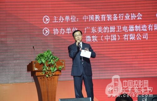 中國(guó)教育裝備行業(yè)協(xié)會(huì)秘書(shū)長(zhǎng)夏國(guó)明主持會(huì)議開(kāi)幕式