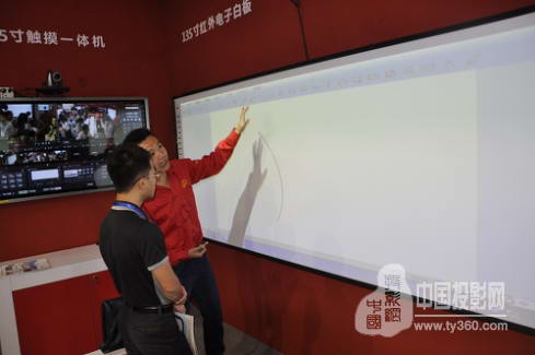 主展區深入專業的展示激光投影機配套多媒體教學一體機及全新款液晶觸摸一體機在錄播教室及在線課堂中的應用,獲得了現場觀眾的一致好評,眾多觀眾積極參與其中,紛紛提出了自己得疑問,艾博德專業的技術支持們也細心為他們解答。