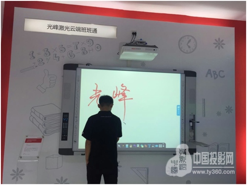 而在展會現場所展示的激光智慧教室解決方案中,所采用到的激光教育投影機,則是光峰今年新推出的3LCD激光教育投影機短焦系列AL-LW210ST,亮度高達到3300流明,配合90吋電子白板,組成便捷的數字化教學互動解決方案,輕松實現授課電腦與顯示屏的互動,避免老師遮擋學生視線,避免顯示屏對老師長時間近距離的健康傷害。