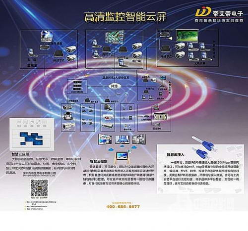 帝艾帝高清監(jiān)控智能云屏=拼接控制器+編碼器+數(shù)字矩陣+多屏顯卡+多類數(shù)據(jù)線。顯示單元即是信號處理模塊,可接入管理IPC、DVR、NVR以及磁盤陣列等設備,各類模擬攝像頭、網(wǎng)絡攝像頭、各類HDMI/DVI/VGA視頻編碼器輸入。高效集成和優(yōu)化,引入“互聯(lián)網(wǎng)+”以及“云服務”等最新技術推出“高清監(jiān)控智能云屏”,將取代傳統(tǒng)監(jiān)視器。將安防產(chǎn)品轉(zhuǎn)變成安防平臺,安防項目集成轉(zhuǎn)變成系統(tǒng)升級平臺,以應對現(xiàn)在的安防市場新局面!