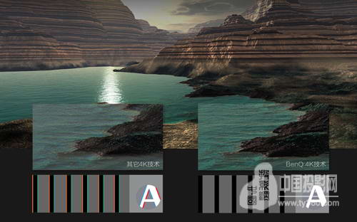 而且明基4K投影機因其采用的是單片DLP芯片,相較于3LCD投影機杜絕了因合光流程而造成的偽影問題。眾所周知3LCD投影機需要有合光的流程,而4K超高分辨率以及e-shift技術加大合光難度,容易造成色彩邊緣偏色。而單片DLP 4K投影機W11000就不會出現類似問題。