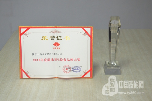 作為中國大屏幕投影行業的“實力派”,在評選啟動之初,宏昌科技就受到組委會的邀請,參與2016年度“投影機品牌大獎”“大屏拼接品牌大獎”“激光顯示設備品牌大獎”等三項獎項的角逐。據悉,河南宏昌科技有限公司曾在2014-2015連續兩年參與該活動,并連續兩屆榮獲“激光顯示設備品牌大獎”、“大屏幕拼接品牌大獎”。此次2016年的年度評選中,河南宏昌科技有限公司通過近兩個個月的網絡海選投票,遙遙領先于眾多企業,并通過層層角逐于專家評審,再次獲得“2016年度投影機品牌大獎”、“2016年度激光顯示設備品牌大獎”、“2016年度大屏拼接品牌大獎”三項大獎!彰顯了宏昌科技雄厚的實力及行業影響力。