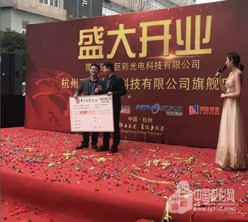 12月10日,強力巨彩浙江又一旗艦店——杭州飛箭光電盛大開業,現場鑼鼓喧天,歌舞飛揚,熱鬧的氣氛吸引了大批人潮前來圍觀喝彩。杭州飛箭光電總經理陳日清、強力巨彩副總經理兼營銷總監黃志勇、強力巨彩產品代言人廖小斌、諾瓦科技副總經理陳小衛、創聯電源營銷總監劉金濤、靈信視覺營銷副總監鄭君矗、吉科應用周海軍以及工程商、千店服務商代表等各屆社會人士悉數到場祝賀,為強力巨彩杭州飛箭旗艦店開業剪彩。