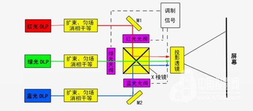 圖1 三基色純激光顯示成像光路示意圖