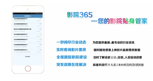 辰星科技秉持著為客戶提供最便捷服務的宗旨,為影院工作人員推出“影院365”服務平臺,不僅縮減大量的溝通時間和工作交接環節,還降低了由于人工傳達帶來的失誤率。僅通過“影院365”遠程遙控運營,老板們就可以放心外出。“影院365”,是您最牢靠的影院貼身管家。