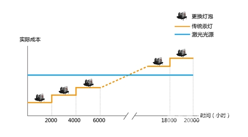 激光光源投影機的光源壽命往往都在20000小時以上,相當于傳統汞燈光源壽命的5~6倍以上,節省了更換燈泡過程中的物料、時間和人力成本;