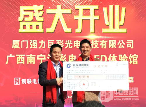 強力巨彩周國華副董事長為浩彩旗艦店送上10萬元開業賀禮。