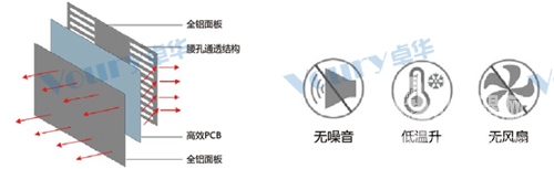 箱體采用鑄鋁外殼被動散熱方式,無風扇設計,拒絕風扇、拒絕噪音;即使貼得再近也聽不到任何噪聲,設備運行靜悄悄,讓用戶徹底告別噪音煩惱。