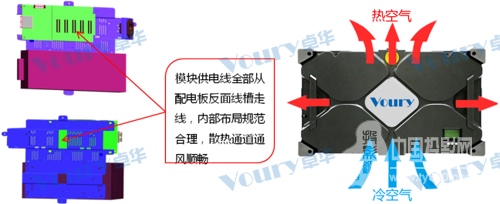 微間距LED顯示屏單元設計采用專用信號、電源二合一拼插連接模式,任意豎排單元之間無需采用線材外聯,僅需要拼插對接、旋轉固定,便可以保證供電與通信雙向連接,省去了復雜的線材煩惱,使得背部空間整體更加簡潔,連接更加穩定。
