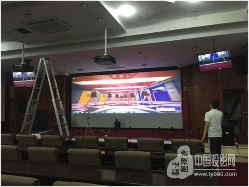 由于該系統要用于會議演示、緊急調度指揮、視頻演示等應急應用,所以對投影機的要求不再是簡單的文字顯示,對圖像清晰度、動態畫面播放等要求都比較高,所以工程師選擇了采用2臺索諾克(Sonnoc) SNP-LW6500高端工程投影機(標準鏡頭兩支),通過吊頂安裝方式,采用硬件融合,最終呈現出了超大高清投影畫面。