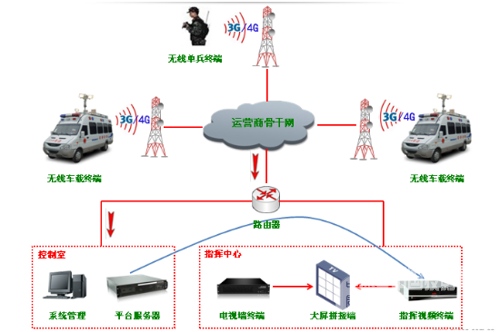 其中,無線圖像傳輸系統,通過在移動指揮車上配置AVCON無線車載終端和輔助設備,為現場作戰人員配置AVCON無線單兵設備,利用3G/4G或衛星等無線網絡傳輸視頻信號,實現隨時隨地的遠程視頻監控和多方遠程視頻會商,輕松應對突發性重大事件的現場監控和應急指揮。