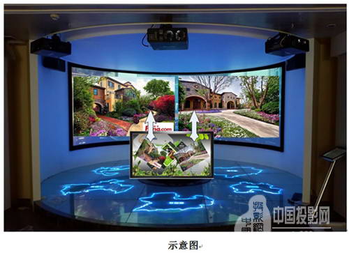 當前項目的展現方式還是以觸摸屏,地面投影和前方弧幕投影聯動顯示為主,之后系統可以擴展到實物沙盤聯動的方式,使得傳統的沙盤模型變為可以受控的系統的一部分。