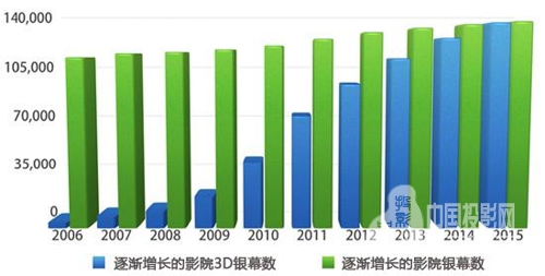 2015年我們切實(shí)看到了中國(guó)電影的火速燎原之勢(shì)。全年全國(guó)影院新增銀幕8035塊,平均以每天22塊的速度增長(zhǎng),觀影人數(shù)較2014年上升51%。據(jù)不完全統(tǒng)計(jì),全國(guó)銀幕數(shù)29000塊,其中3D銀幕數(shù)22600約占銀幕總數(shù)77.8%。不僅是中國(guó),全球數(shù)字影院的數(shù)量都在不斷增長(zhǎng),據(jù)美國(guó)MKPE咨詢有限責(zé)任公司統(tǒng)計(jì),全球目前的3D銀幕數(shù)占總銀幕數(shù)的57%,并且59%的3D銀幕都是金屬幕布。在美國(guó)3D電影銀幕要比2D的少,而其他國(guó)家3D銀幕要遠(yuǎn)遠(yuǎn)超過(guò)2D,放映方式則以偏振居多。