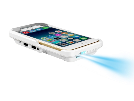 蘋果iphone6系列手機嵌入美高G6微型投影機,可變成商務隨身大屏,開機即投,即投即用。