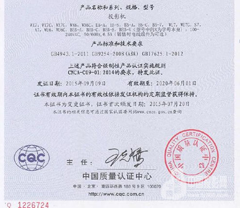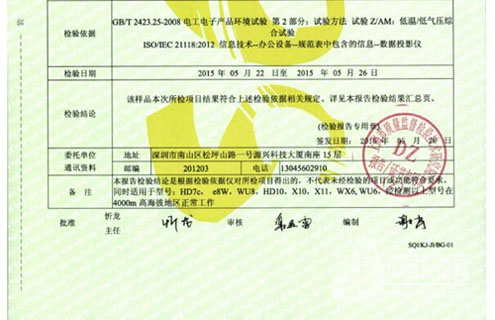 AVANZA投影機(jī)同時(shí)還獲得了國(guó)家權(quán)威認(rèn)證機(jī)構(gòu)頒發(fā)的海拔4000米無亮度衰減的證書: