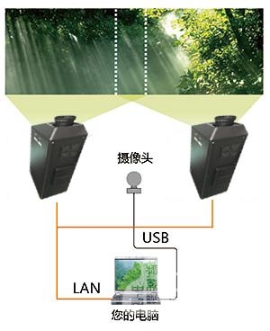 智能疊加功能能夠最大支持4臺投影機水平或垂直方向進行疊加。例如通過這一功能,使用4臺投影機進行智能疊加,亮度可實現45000流明以上。相對于其他投影機復雜的疊加投影安裝過程,該投影機由于具有獨有的幾何校正功能,及專用軟件(Stacking Correction Tool utility),可以通過支持的攝像頭進行記憶性調整,設置變得輕松簡單。而且,進行多臺投影機疊加投影時,這一功能能夠保證即使其中一臺投影機停止工作,其他投影機投出的矩形畫面也不被破壞,不影響正常使用。安裝時,只需要將專用軟件裝在PC中,將支持的攝像頭通過USB接口連接在PC上,調整好的數據能夠存儲在投影機中,在使用過程中無需PC和攝像頭的連接。