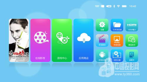 六、全能接口,酷樂視S1+/S2+配備了日常所需的所有接口,且都集成在機身后部,不僅美觀更令人一目了然,配備VGA、HDMI、AV、USB2.0、USB3.0、32GTF卡即插即用隨時播放,采用5G /2.4G雙頻WIFI+藍牙4.0MTK高端WIFI模組,帶來急速體驗,它還可以利用Dlna/miracast/airpaly無線傳輸技術將手機、平板、電腦的畫面無線同屏到投影屏幕上;