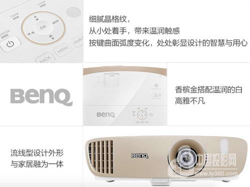 好馬配好鞍,看滿屏都是甜甜甜的韓劇,自然要配備美美美的投影機。自1998年,明基投影機研發(fā)團隊成立以來,明基家用投影機憑借優(yōu)質(zhì)的制造工藝和超前工業(yè)設(shè)計席卷國內(nèi)外多項行業(yè)大獎,成為專業(yè)家用投影機市場甚至智能家電領(lǐng)域的明星。明基色準大師W2000的設(shè)計師將對宇宙天圓地方的感悟融入產(chǎn)品外觀設(shè)計之中,探求生機與穩(wěn)當?shù)奈⒚罹猓跃靠季康墓に嚧蚰C身,旨在鑄造一臺兼具美學和實用性為一體的客廳藝術(shù)品。晶格紋以極細膩的做工處理,兼具紋理質(zhì)感和溫潤觸感;依循人體工學精心設(shè)計的按鍵曲面弧度,盡顯設(shè)計者的智慧和用心;高雅迷人的香檳金搭配溫潤簡約的珍珠白,打造色彩的質(zhì)感和層次;流線型設(shè)計外形,完美融合造型、功能和材料,蘊含自然的律動。