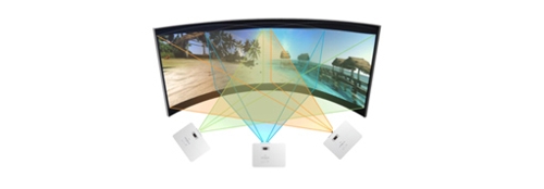 在專業(yè)工程應用中,“拼接融合”和“疊加”是最常見的方案,F(xiàn)系列對此進行了針對性的設計。首先,它支持融合與曲面變形功能,融合數(shù)量無限制,可以打造超大尺寸畫面及弧幕方案。
