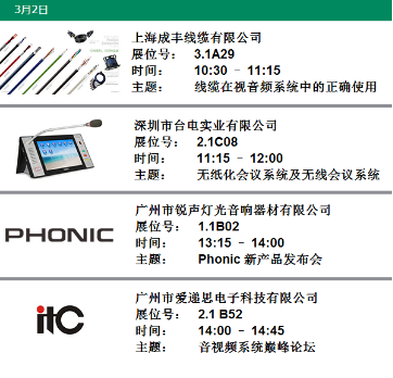 演示品牌:千周、艾迪、影響、韻沁、景龍科藝、千晟、杜氏、東雅、愛高、合和、中天信、藍爵、洛特思、邁聽、諾趣、德國美高、辰風、聲浪、德士奧、特城、Seeburg Acoustic Line、蜚聲、唯優聲學、萬亞、藝能聲、悅妙、醉美聲及聲揚。